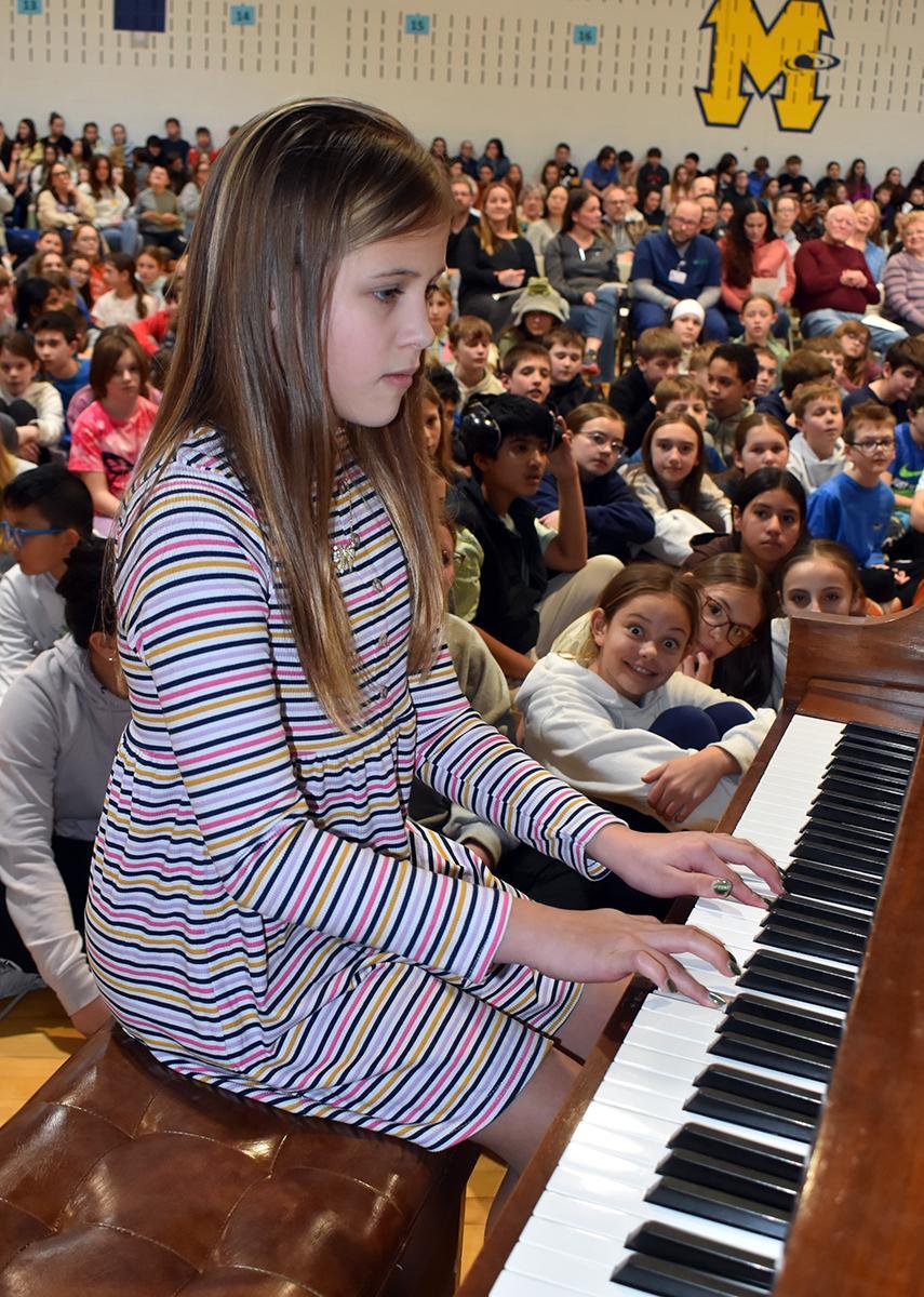 Sixth-graders Reese Emanuele and Ava Niklewicz offered a lyrical performance; and fifth-grader Lydia Ward offered an Irish dance. Fifth-grader Lucas Dausch and fifth-grader Vera Elliott performed on piano; sixth-grader Madeline Beasley on violin; sixth-grader Evan Will and sixth-grader Harrison Spreng on drums; and sixth-grader Zoey Argeras and fifth-grader Rhys Kresiniski on guitar and drums, respectively.