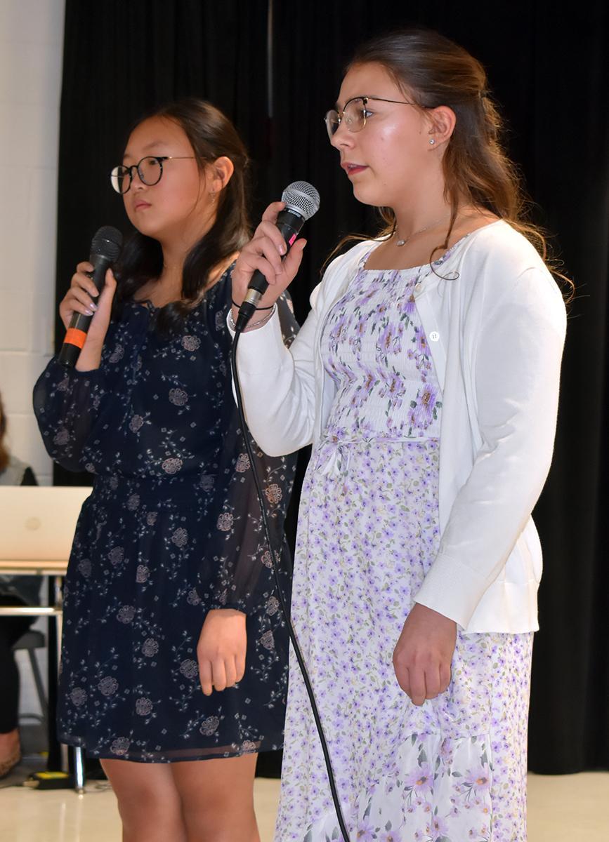 Sixth-graders Eliana Kang and Evelyn Namisnak, sixth-grader Amaya Constant; sixth-grader Emma Speir; sixth-graders Lydia McKim and Mackenzie Schnur, and fifth-grader Stella Burgess offered vocal performances.