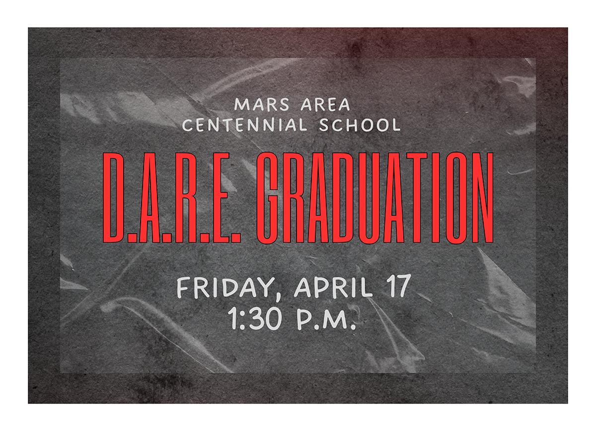 Fifth-graders at Mars Area Centennial School will graduate from the 2025-2026 DARE (Drug Abuse Resistance Education) program at 1:30 p.m. on Friday, April 17.